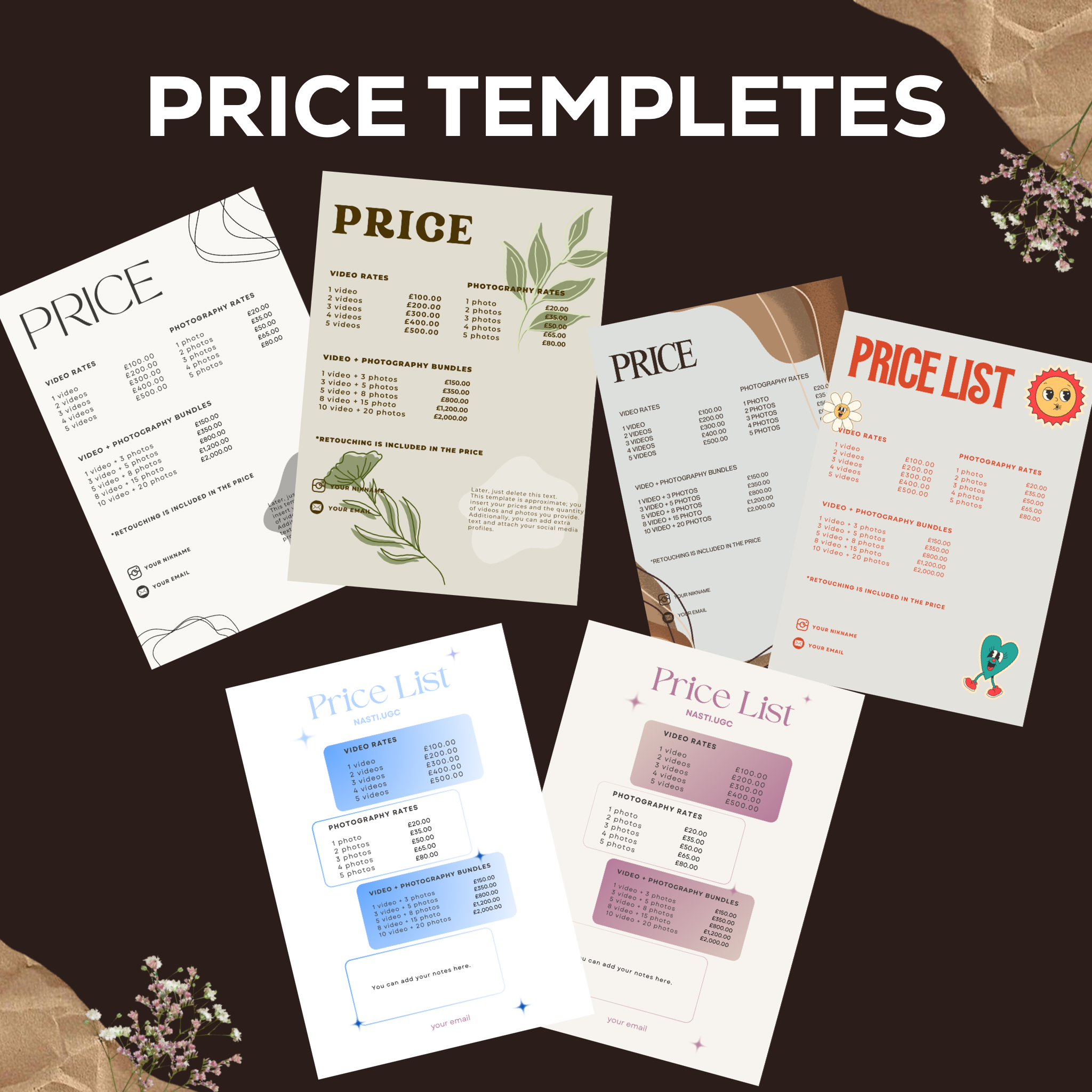 I've created 6 templates with different designs. Upon purchase, you'll receive all of them immediately, and you can easily choose the one you like and start using it 🤍